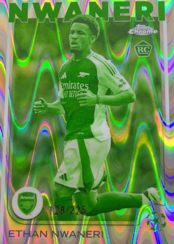 Best Prices Available For Sale of Ethan Nwaneri 2024 Topps Chrome UEFA Club Competitions #158 Night Vision RayWave Refractor /225