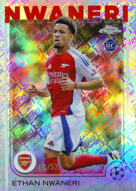 Ethan Nwaneri 2024 Topps Chrome UEFA Club Competitions #158 Toppsfractor /52 Rookie RAW Price Guide