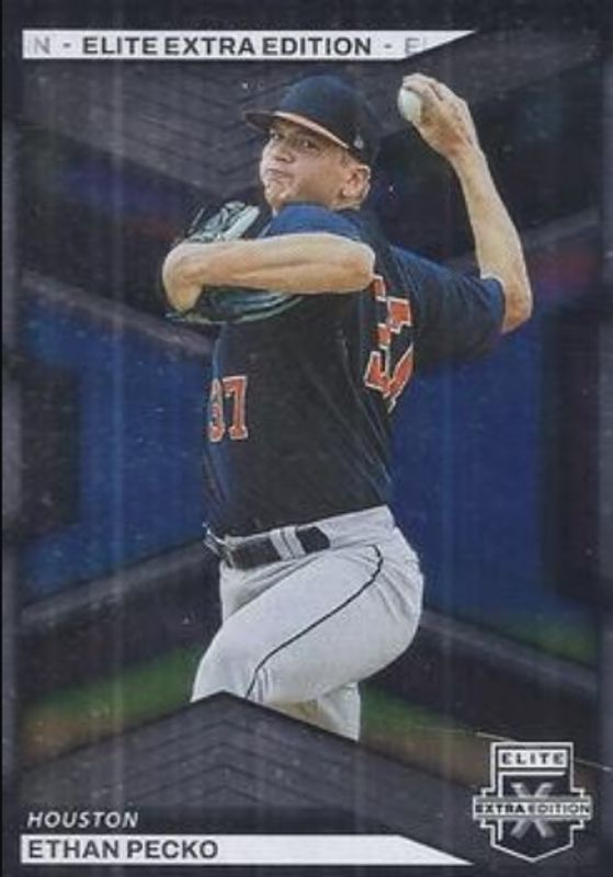The Ethan Pecko 2023 Elite Extra Edition #20 Base card is 1 of 39 Ethan Pecko's card variations in the 2023 Elite Extra Edition set being tracked by Sports Card Investor, including Pink, Signatures, Status Green /499, Signatures die-cut /399, and Aspirations Blue /349.