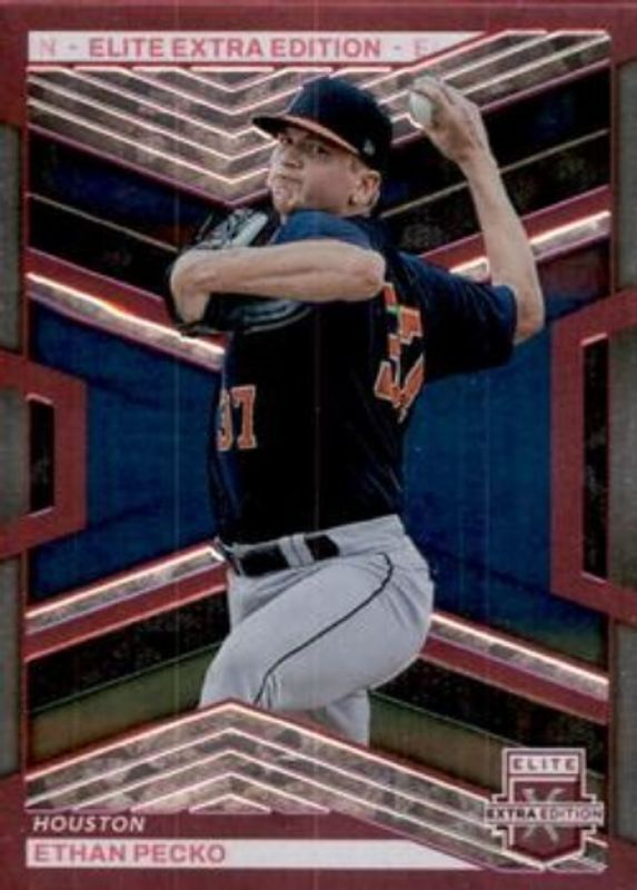 The Ethan Pecko 2023 Elite Extra Edition #20 Pink card is 1 of 39 Ethan Pecko's card variations in the 2023 Elite Extra Edition set being tracked by Sports Card Investor, including Base, Signatures, Status Green /499, Signatures die-cut /399, and Aspirations Blue /349.
