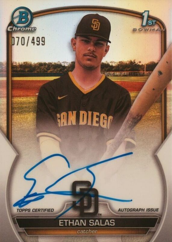 2023 Bowman Chrome 1st ETHAN SALAS Prospect Refractor Auto /499 - Padres
