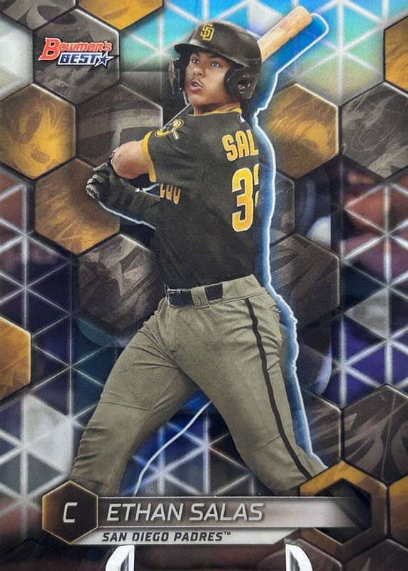 This card is 1 of 25 Ethan Salas' card variations in the 2023 Bowman's Best set being tracked by Sports Card Investor, including Top Prospects, Top Prospects - Wave Refractor, Top Prospects - Mini-Diamond Refractor /299, Top Prospects - Purple Refractor /250, and Top Prospects - Aqua Lava Refractor /199.