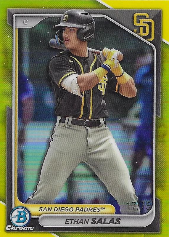 2024 Bowman Chrome Ethan Salas Card BCP-102, Yellow Parallel 04/75 Padres