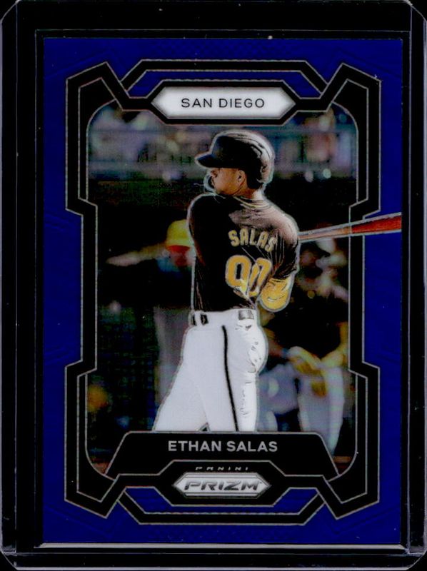 The Ethan Salas 2024 Prizm #141 Blue /199 card is 1 of 71 Ethan Salas' card variations in the 2024 Prizm set being tracked by Sports Card Investor, including Base, Blue Ice, Green, Green Ice, and Pink Ice.