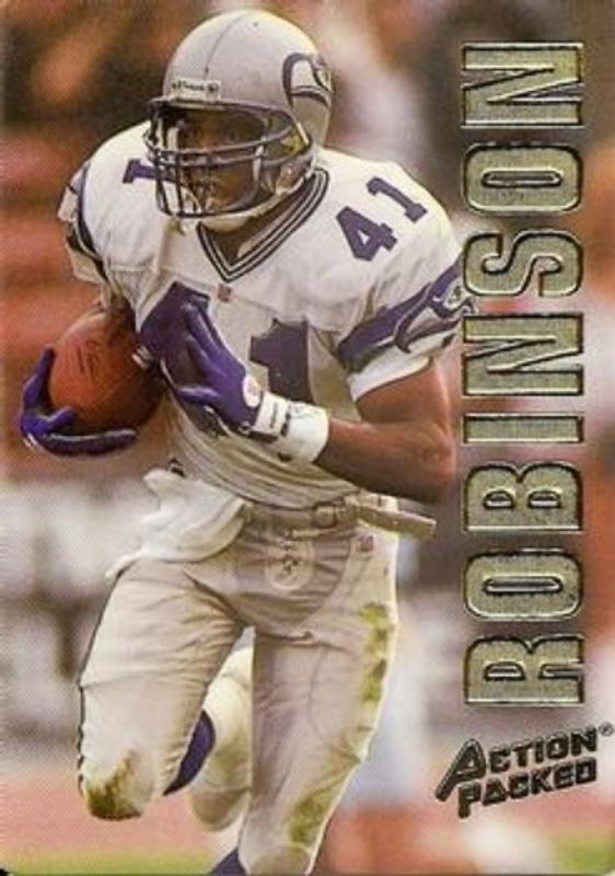 The Eugene Robinson 1993 Action Packed #158 Base card is 1 of 2 Eugene Robinson's card variations in the 1993 Action Packed set being tracked by Sports Card Investor, including Mint /500.