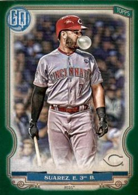 The Eugenio Suarez 2020 Topps Gypsy Queen #105 Green card is 1 of 19 Eugenio Suarez's card variations in the 2020 Topps Gypsy Queen set being tracked by Sports Card Investor, including Base, Bazooka Back, GQ Logo Swap, Missing Nameplate, and Silver.