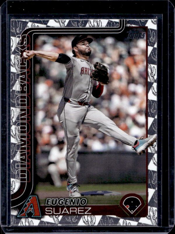 The Eugenio Suarez 2025 Topps #328 Spring Training card is 1 of 63 Eugenio Suarez's card variations in the 2025 Topps set being tracked by Sports Card Investor, including Base, Aqua Holo Foil, Diamante Foil, Holo Foil, and Pink Diamante Foil.