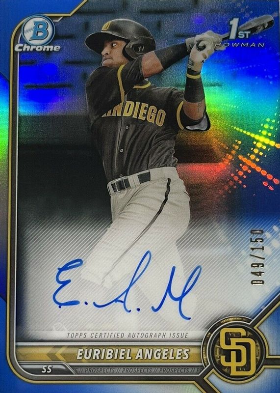 2022 BOWMAN CHROME EURIBIEL ANGELES BLUE REFRACTOR 1ST AUTO /150 PADRES CN