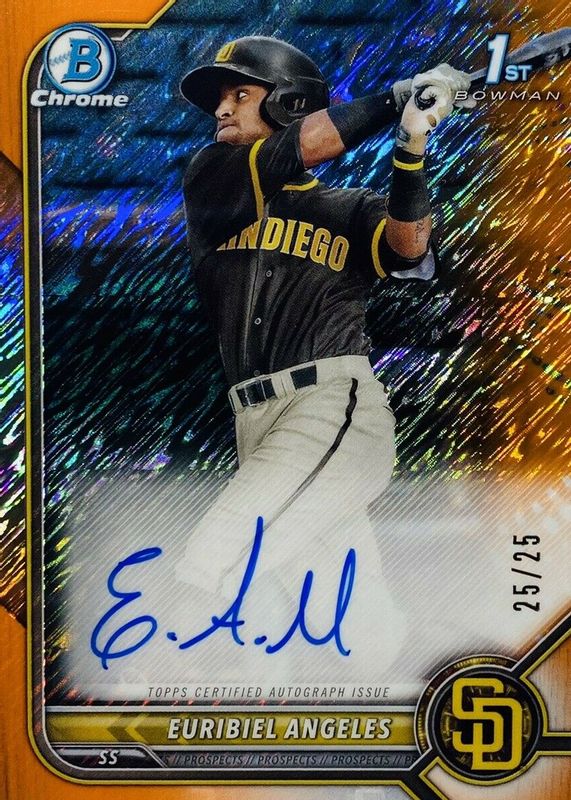 Euribiel Angeles 2022 Bowman #CPA-EA Chrome Prospect Auto - Orange Shimmer Refractor /25 (1st) RAW Price Guide