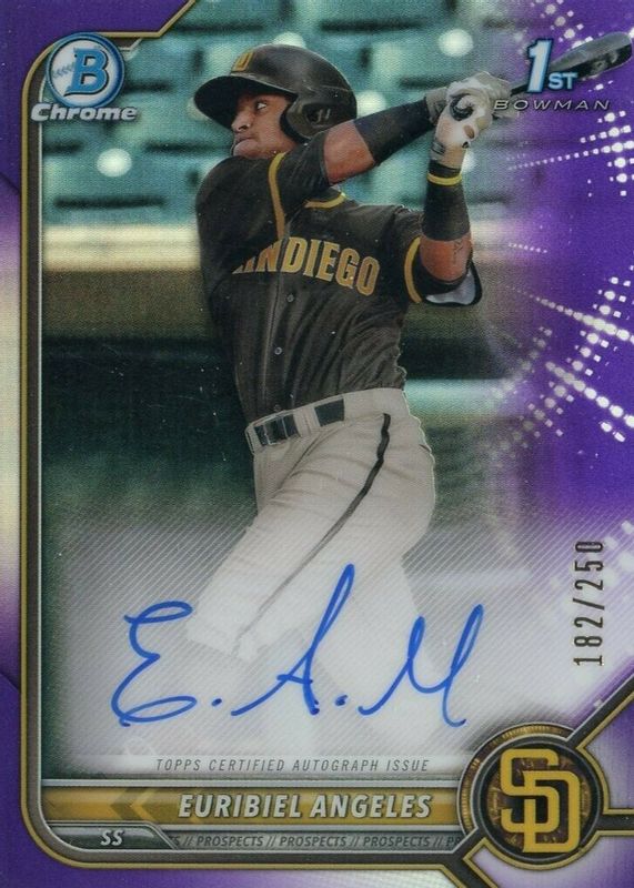 2022 BOWMAN CHROME PURPLE /250 1ST PROSPECT AUTO EURIBIEL ANGELES PADRES