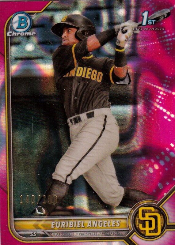 Euribiel Angeles 2022 Bowman #BCP-32 Chrome Prospects - Fuchsia Lava Refractor /199 (1st) RAW Price Guide