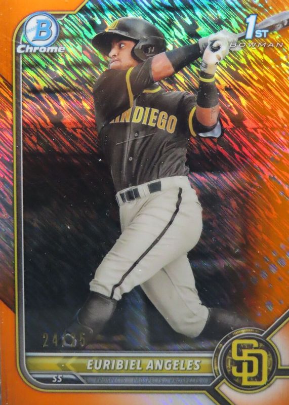 Euribiel Angeles 2022 Bowman #BCP-32 Chrome Prospects - Orange Shimmer Refractor /25 (1st) RAW Price Guide