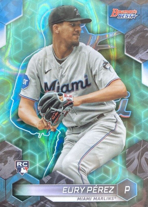 Eury Perez 2023 Bowman's Best Aqua Lava Refractor #/199 Miami Marlins