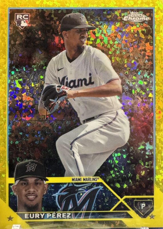Eury Perez 2023 Topps Chrome Update #USC100 Yellow Mini-Diamond Refractor /75 Rookie RAW Price Guide