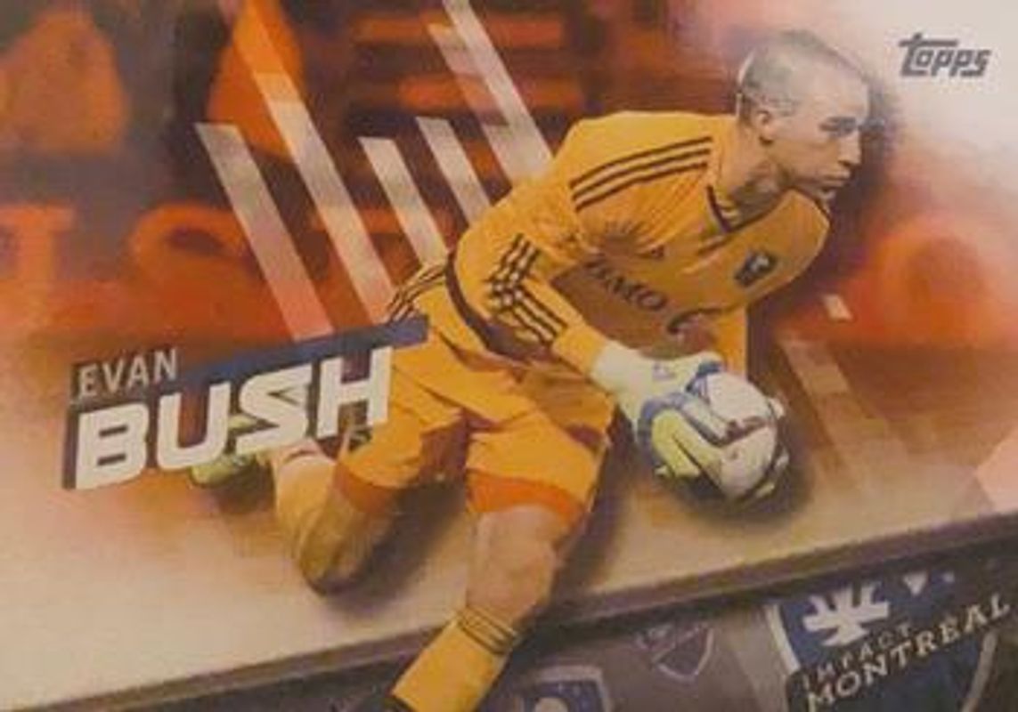 The Evan Bush 2016 Topps MLS #38 Orange /25 card is 1 of 9 Evan Bush's card variations in the 2016 Topps MLS set being tracked by Sports Card Investor, including Base, Blue /99, Red /5, Black /1, and Printing Plates Black /1.