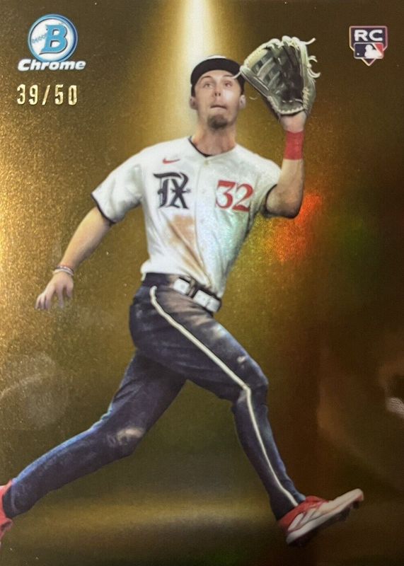 2024 Bowman Chrome Evan Carter Spotlight RC Rangers #34/50 Gold Case Hit!!!