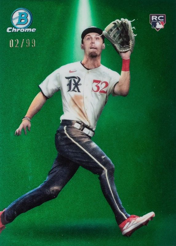 2024 Bowman Chrome Spotlight Evan Carter Green Refractor 99/99. Texas Rangers 📚