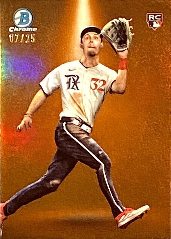 Evan Carter RC -2024 Bowman Spotlight Chrome Orange Refractor #/25 BS-14 Rangers