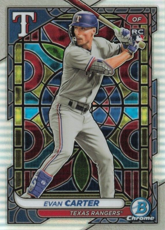 2024 Bowman Chrome Evan Carter Etched in Glass Variations RC Rookie #65 Rangers