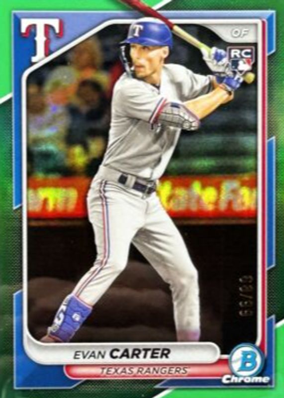Best Prices Available For Sale of Evan Carter 2024 Bowman Chrome #65 Green Refractor /99