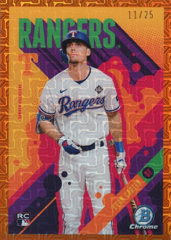 Auctions Ending Soon for Evan Carter 2024 Bowman Chrome Mega Box #BA-24 Bowman Ascensions - Orange Mojo Refractor /25 Rookie RAW