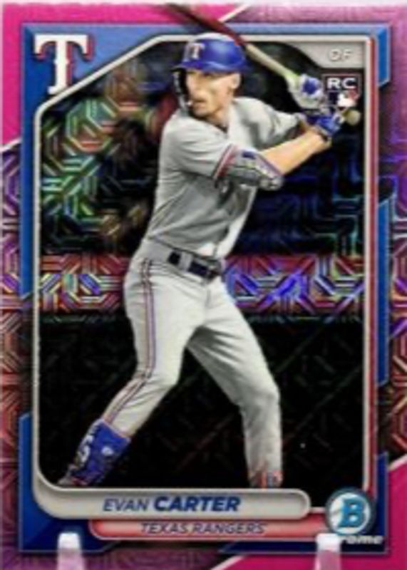 Best Prices Available For Sale of Evan Carter 2024 Bowman Chrome Mega Box #65 Pink Mojo Refractor /199
