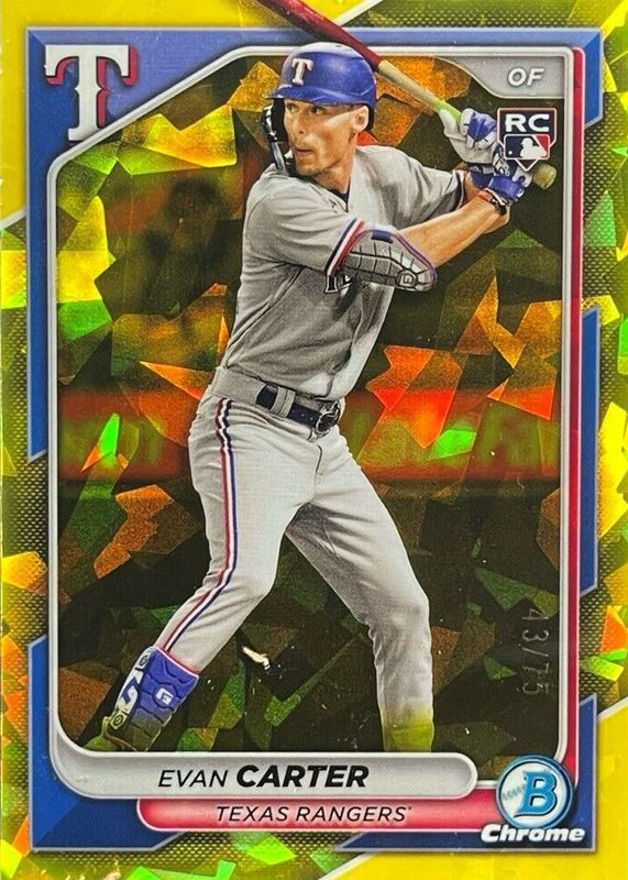2024 Bowman Chrome Sapphire Evan Carter RC Yellow Rookie #65/75 Rangers