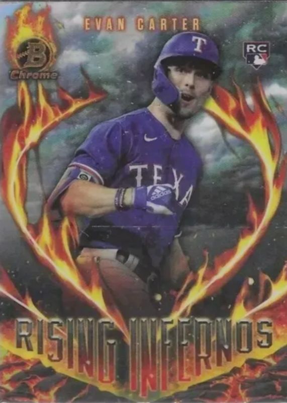 EVAN CARTER 2024 Bowman Chrome RISING INFERNOS Refractor RC #RI-5 Rookie RANGERS