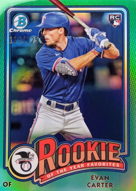 Best Prices Available For Sale of Evan Carter 2024 Bowman #ROY-12 Rookie of the Year Favorites - Aqua Refractor /125