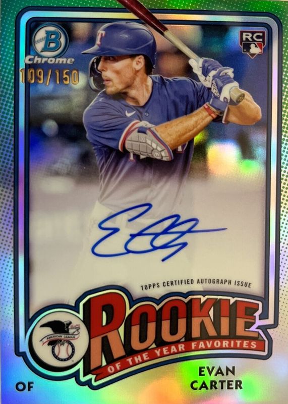 2024 Bowman Evan Carter Rookie of the Year Favorites Auto RC /150