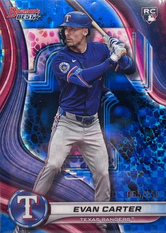 2024 BOWMANS BEST EVAN CARTER ROOKIE /150 BLUE XFRACTOR TEXAS RANGERS #66
