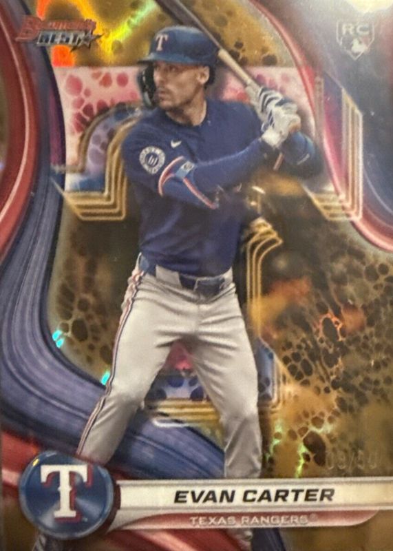 2024 Bowman's Best Texas RANGERS EVAN CARTER Gold /50 Refractor Rookie