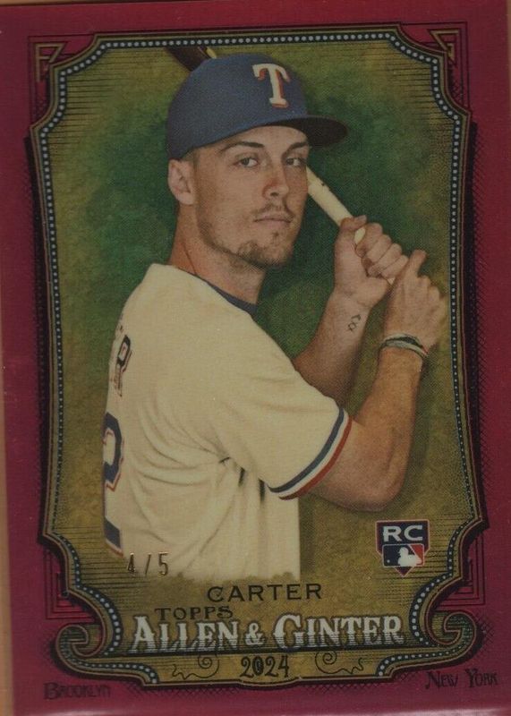 Evan Carter 2024 Topps Allen & Ginter #96 Chrome - Red Refractor /5 Rookie RAW Price Guide