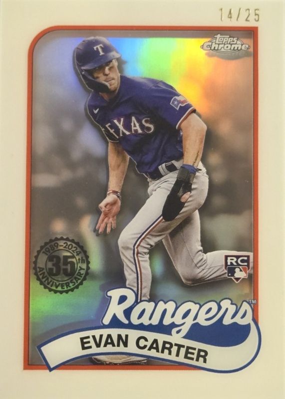 2024 Topps Chrome Rookie Evan Carter 1989 Layer Variation /25 Rangers