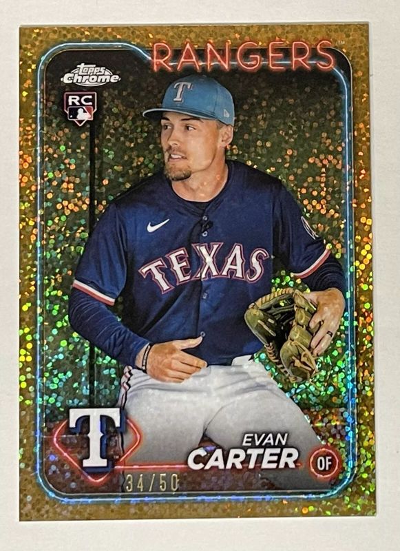 Evan Carter 2024 Topps Chrome #136 Base Image Variations - Gold Speckle Refractor /50 Rookie RAW Price Guide