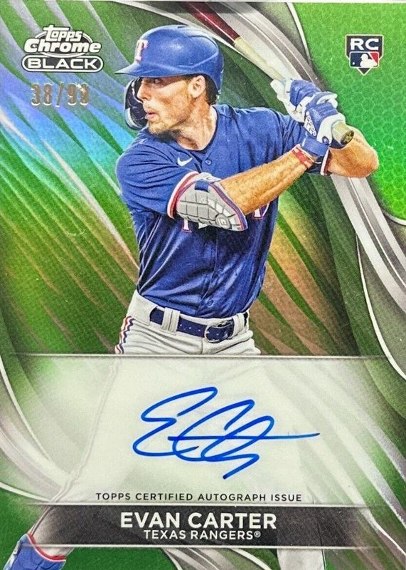 2024 Topps Chrome Black Evan Carter Green Refractor Rookie Auto #39/99 Rangers