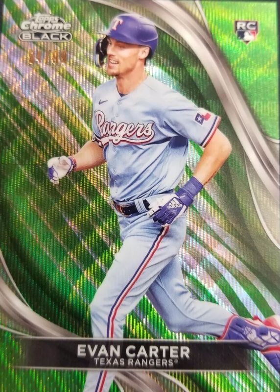 Best Prices Available For Sale of Evan Carter 2024 Topps Chrome Black #83 Green Wave Refractor /99