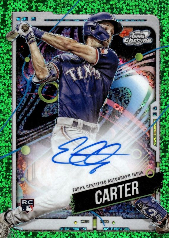 2024 Topps Cosmic Chrome Evan Carter RC Green Space Dust Auto 17/75 Rangers