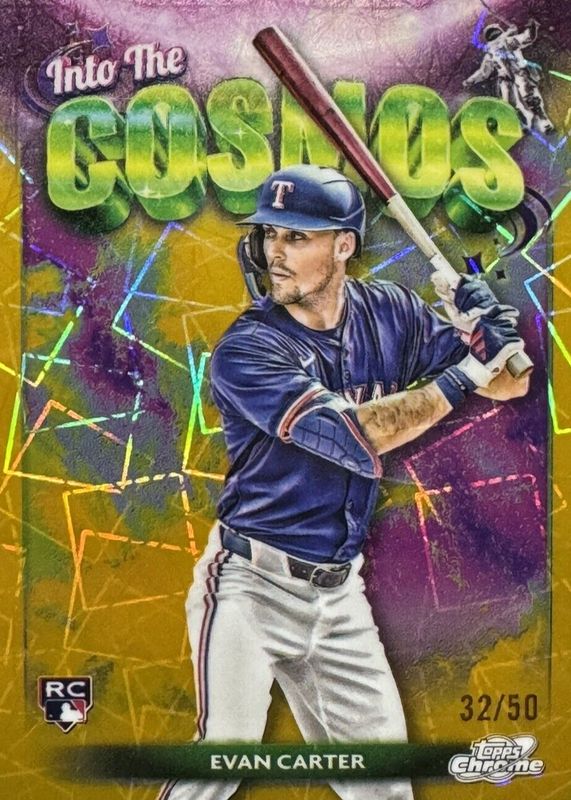 2024 Topps Cosmic Chrome Evan Carter Into the Cosmos RC Gold Refractor #44/50