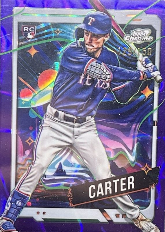 Evan Carter 2024 Topps Cosmic Chrome 186 Purple Nebula Refractor RC 126/150