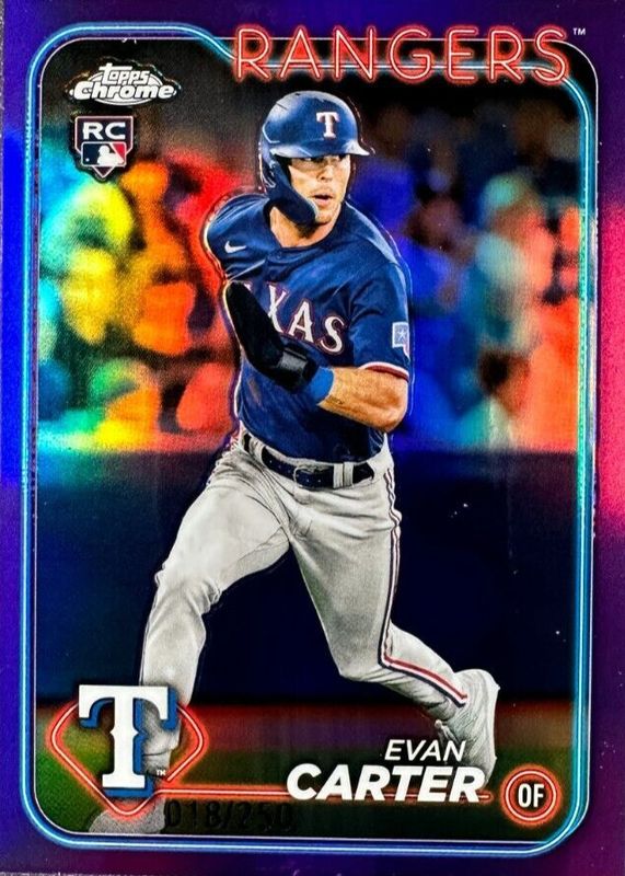 EVAN CARTER 2024 Topps Chrome RC True Purple Refractor /250 Texas Rangers #136