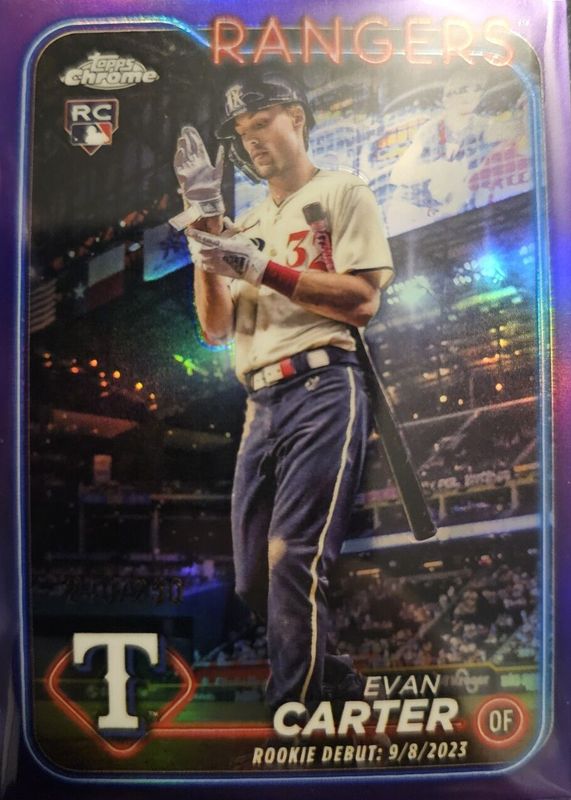 Best Prices Available For Sale of Evan Carter 2024 Topps Chrome Update #USC199 Rookie Debut - Purple Refractor /250
