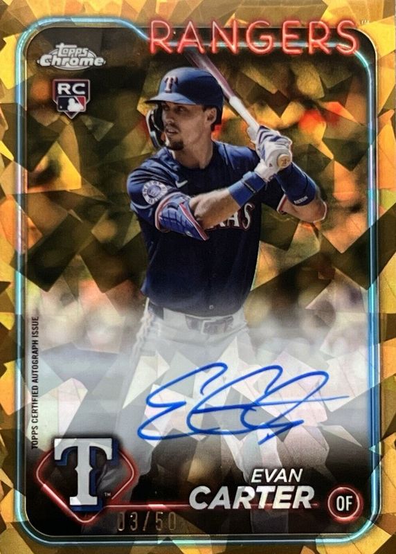 2024 Topps Chrome Update Sapphire Evan Carter Rookie GOLD Auto /50 RC Rangers