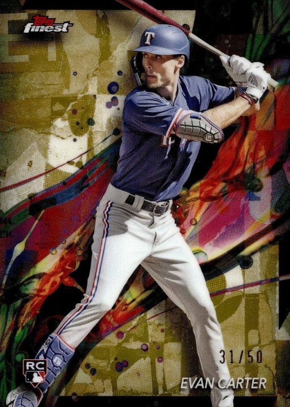 This card is 1 of 57 Evan Carter's card variations in the 2024 Topps Finest set being tracked by Sports Card Investor, including Common, Rare, Uncommon, Common - Checkerboard Refractor, and Common - Refractor.