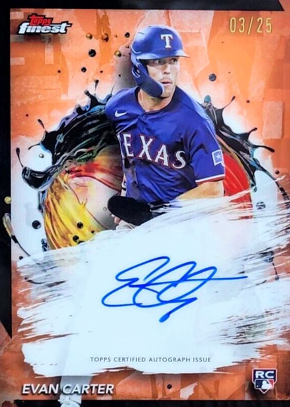 2024 Topps Finest Evan Carter RC Orange Finest Rookies Auto /25 Texas Rangers