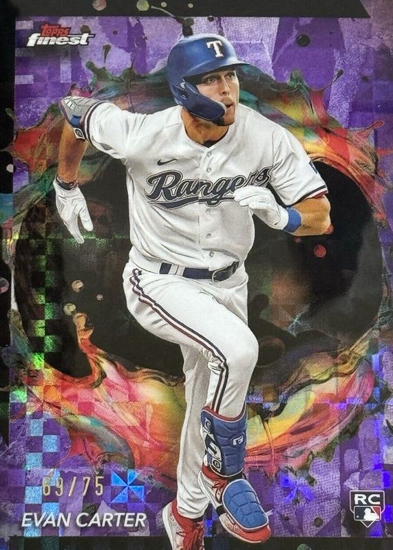 Evan Carter 2024 Topps Finest Rare Purple Checkerboard Refractor RC /75 #290