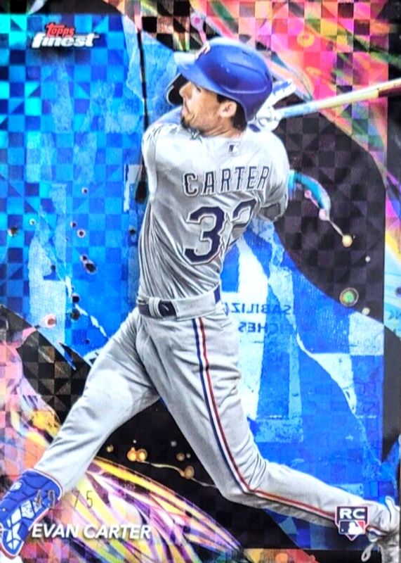 2024 Topps Finest Evan Carter Blue Checkerboard Refractor RC #/75 #107
