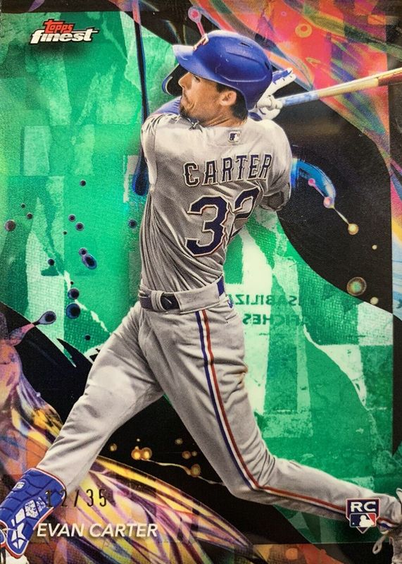 2024 Topps Finest Evan Carter Green Refractor RC #0/35 #107 Rangers