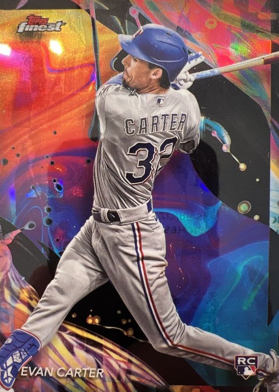 Best Prices Available For Sale of Evan Carter 2024 Topps Finest #107 Uncommon - Oil Spill Refractor /(SSP)