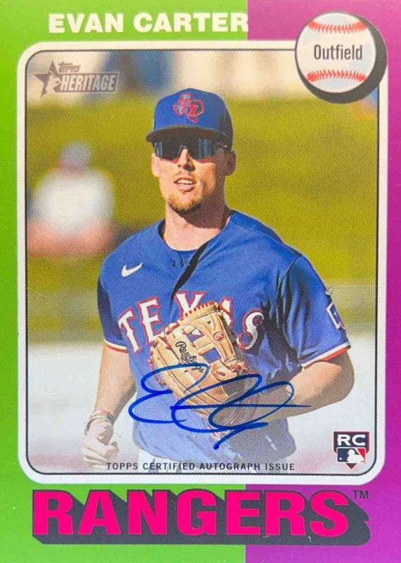 2024 Topps Heritage High Number - Evan Carter - Real One Reverse Auto - Rangers